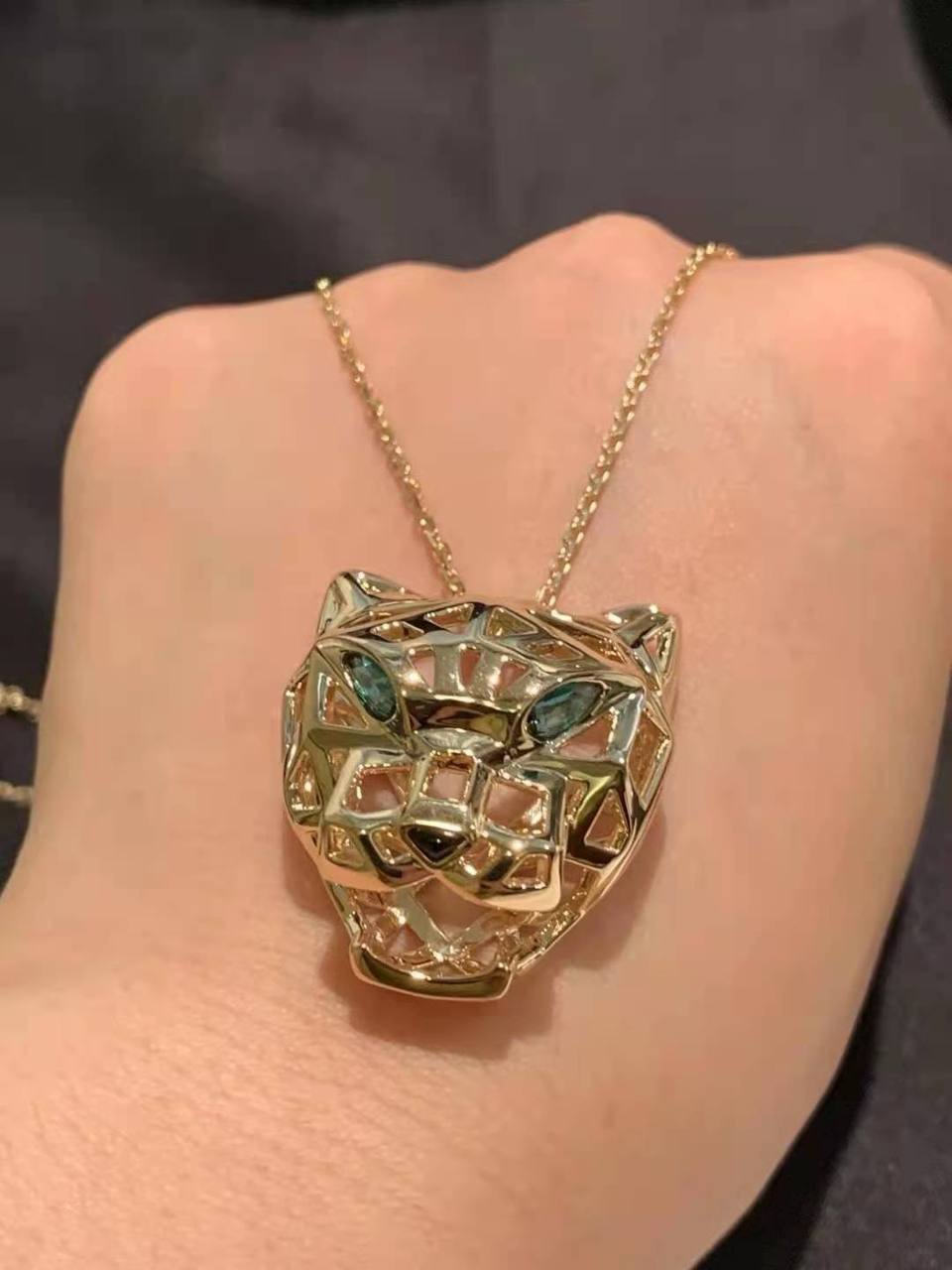 Колье Panthеre de Cartier LUX-116418 – это изысканное ювелирное изделие от Cartier, представляющее собой колье с подвеской в виде головы пантеры. Золотистый цвет и ажурный дизайн создают эффектный визуальный образ. Колье предназначено для дополнения вечерних и повседневных образов, подчеркивая элегантность и стиль.
