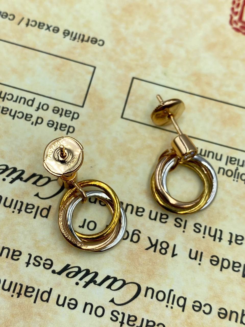 Серьги Cartier LUX-97530 – это элегантное украшение, выполненное в стиле классики. Серьги имеют три кольца разных цветов, с золотыми элементами. Этот аксессуар станет прекрасным дополнением к любому образу, подчеркивая изысканный вкус своей обладательницы.