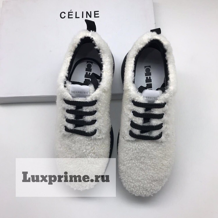Кроссовки женские Celine ОЖ-359 — это стильная и уютная модель, сочетающая спортивный дизайн с элементами комфорта. Верх кроссовок выполнен из мягкого, пушистого материала, напоминающего овечью шерсть, что придает им оригинальный и модный вид. Классическая шнуровка и черная подошва создают контраст и подчеркивают элегантность, делая эту пару идеальной для повседневного гардероба.