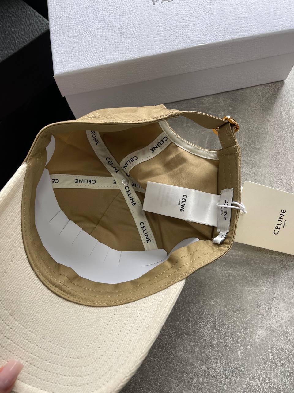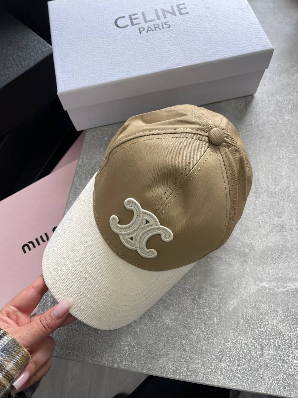 Бейсболка Celine LUX-117153 представляет собой стильный аксессуар для повседневной носки. Бейсболка выполнена в двух тонах: верхняя часть — светло-коричневая, а козырек — кремового цвета. На передней части бейсболки расположен логотип бренда.