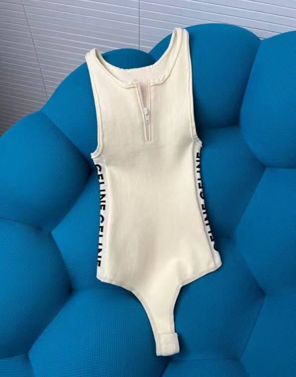 Это боди Celine LUX-66484 — стильный и удобный элемент гардероба. Модель выполнена в кремовом цвете и украшена вертикальными надписями бренда по бокам. Застежка-молния на груди придает изделию модный акцент. Благодаря своему дизайну, боди подходит как для повседневной носки, так и для создания эффектных образов.