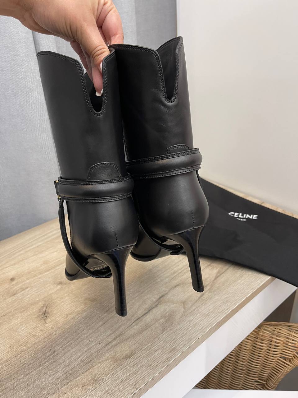 Ботильоны Celine LUX-94578 — это стильная и элегантная обувь, сочетающая в себе современный дизайн и классическую элегантность. Черный цвет и лаконичный дизайн делают ботильоны универсальным вариантом для разных образов. Они идеально подойдут для создания как повседневных, так и более формальных ансамблей.