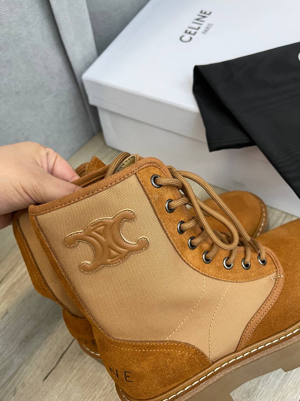 Ботинки Celine LUX-95205 — это стильная обувь для повседневной носки, представленная в актуальном дизайне. Эти ботинки сочетают в себе элементы классики и современности, идеально подходящие для создания модных образов. Ботинки выполнены в приятном коричневом оттенке, что делает их универсальными для сочетания с различными предметами гардероба.