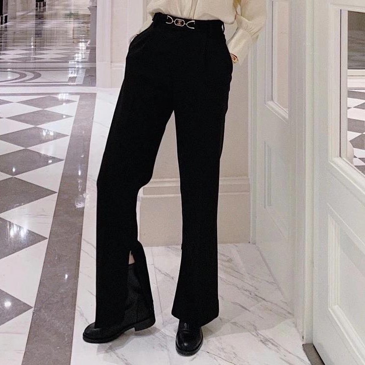 Брюки Celine LUX-42606 – это элегантная модель, выполненная в классическом черном цвете. Высокая посадка и расклешенный к низу силуэт придают изделию изысканный вид. Декоративная пряжка на поясе добавляет утонченности. Эти брюки идеально подойдут для создания как деловых, так и вечерних образов, подчеркивая достоинства фигуры.