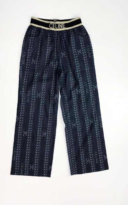 Брюки Celine LUX-53614 — это элегантная модель, сочетающая в себе классический крой и современный принт. Эти брюки, выполненные в темном оттенке, украшены узнаваемым логотипом бренда Celine, расположенным вертикальными полосами. Широкий эластичный пояс с надписью Celine добавляет изделию спортивный шик, делая его универсальным элементом гардероба.