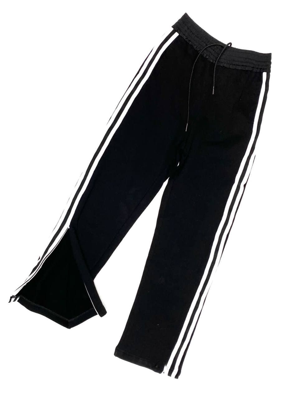 Брюки Celine LUX-62477 представлены в спортивном стиле, идеальны для создания современных и комфортных образов. Их лаконичный дизайн с контрастными лампасами и разрезами по бокам делает их универсальным элементом гардероба.