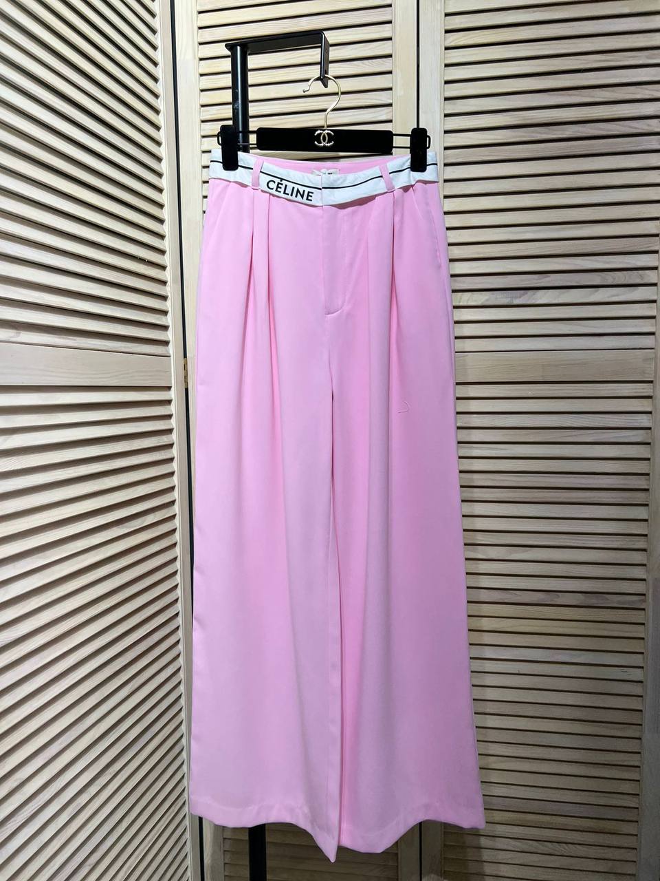 Брюки Celine LUX-89149 – это элегантные брюки от известного бренда, выполненные в нежно-розовом цвете. Данная модель имеет широкий крой, высокую посадку и оригинальный пояс с логотипом Celine. Брюки можно использовать как для создания повседневных, так и более формальных образов.