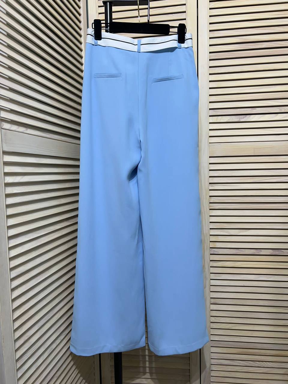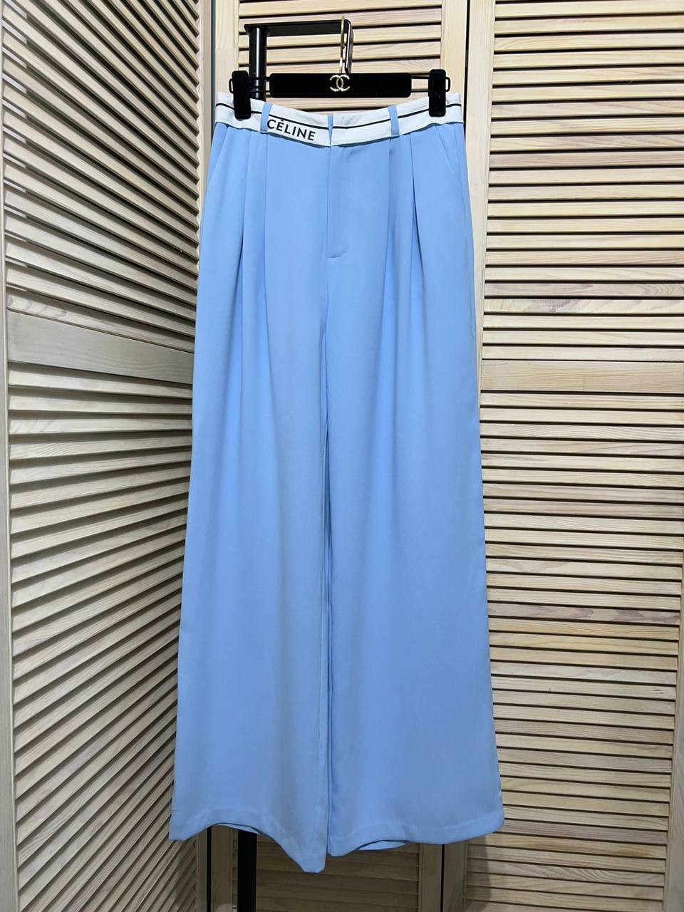 Брюки Celine LUX-89150 – это воплощение элегантности и стиля. Брюки небесно-голубого цвета с широким поясом, украшенным логотипом бренда, отлично подойдут для создания как повседневных, так и более формальных образов. Эти брюки, вероятно, сочетают в себе комфорт и изысканность.