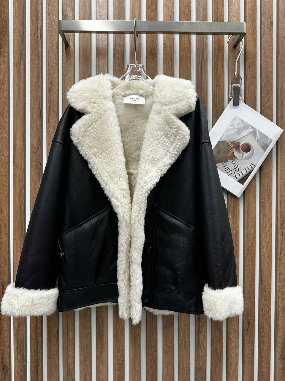 Дубленка Celine LUX-112203 — это стильная и теплая верхняя одежда в современном дизайне. Она выполнена в классическом черном цвете с контрастным белым мехом на воротнике и манжетах. Эта дубленка идеально подойдет для создания повседневных образов в холодное время года.