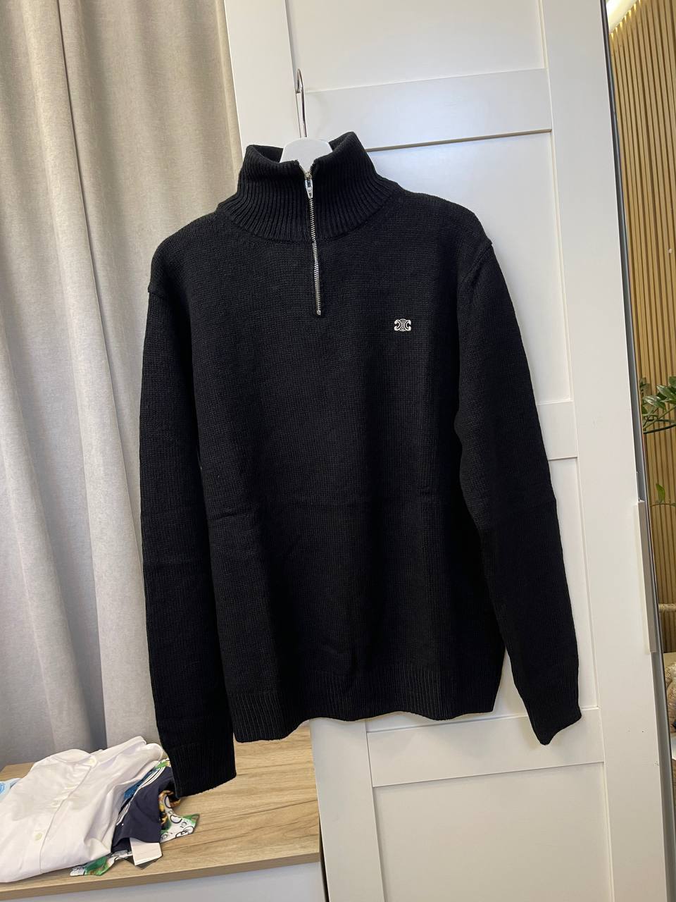 Джемпер Celine LUX-109596 – стильный предмет гардероба, представленный в классическом черном цвете. Эта модель джемпера обладает минималистичным дизайном и высоким воротником, застегивающимся на молнию. Идеально подойдет для создания как повседневных, так и более элегантных образов.