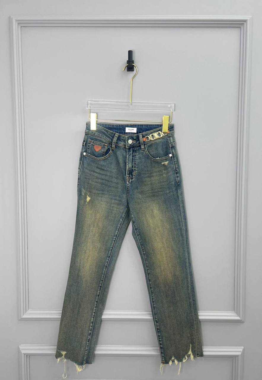 Джинсы Celine LUX-91540 - это стильные джинсы, предлагающие сочетание классики и современных деталей. Модель выполнена в потертом синем цвете, что придает им винтажный вид. Дизайн джинсов включает в себя потертости и необработанные края, создавая модный и расслабленный образ.