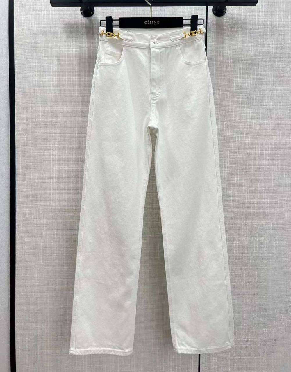 Джинсы Celine LUX-101539 представляют собой стильные белые джинсы прямого кроя. Они отличаются минималистичным дизайном, делая их универсальным элементом гардероба. Джинсы предназначены для повседневной носки, идеально подходя для создания различных образов.