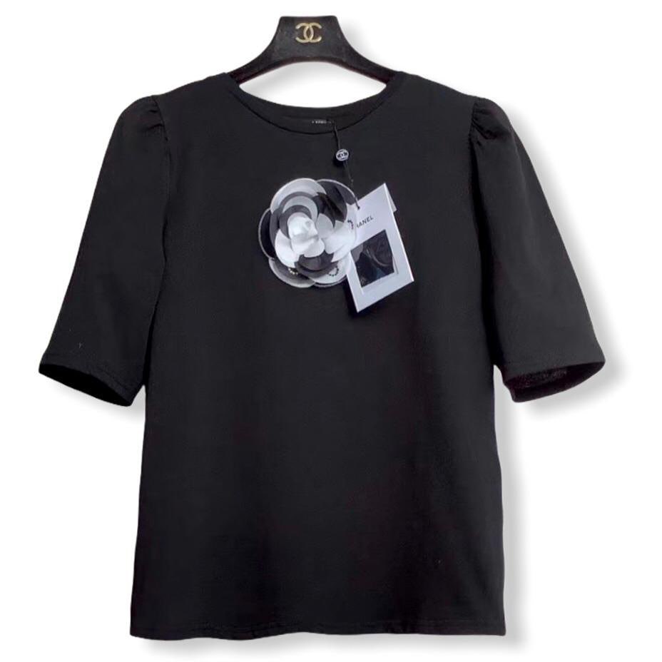 Эта черная футболка Celine LUX-45948, созданная для женщин, отличается элегантным и изысканным стилем, идеально подходящим для создания утонченных образов. Декоративный элемент в виде цветка придает изделию особый шарм.
