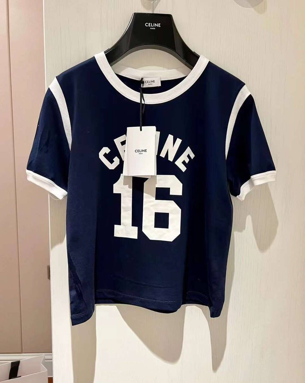 Футболка Celine LUX-82141 — это стильная и удобная вещь в спортивном стиле. Темно-синий цвет футболки гармонично сочетается с белыми деталями на воротнике и рукавах, создавая контрастный и узнаваемый образ. На передней части крупно нанесен принт с названием бренда и номером.