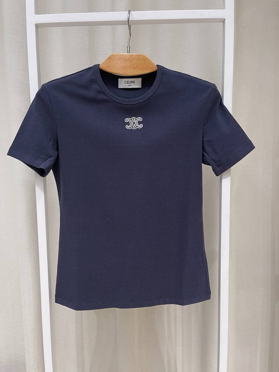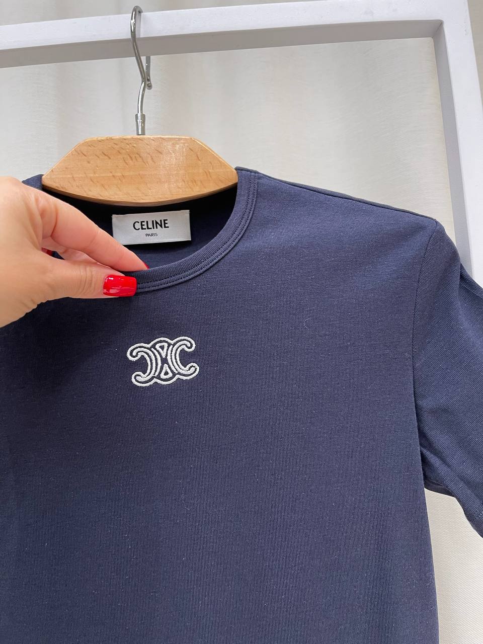 Представленная футболка Celine – это стильный и лаконичный элемент гардероба, который станет отличным дополнением к вашему образу. Модель выполнена в темно-синем цвете и украшена небольшим логотипом бренда на груди.