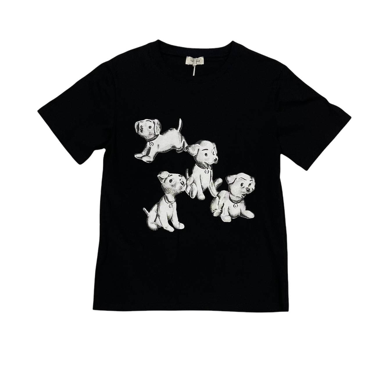 Футболка женская Celine LUX-62564 представляет собой стильный и модный предмет гардероба. Эта черная футболка с оригинальным принтом из очаровательных щенков воплощает современный стиль бренда Celine. Идеально подходит для создания непринужденных, но при этом элегантных образов на каждый день.