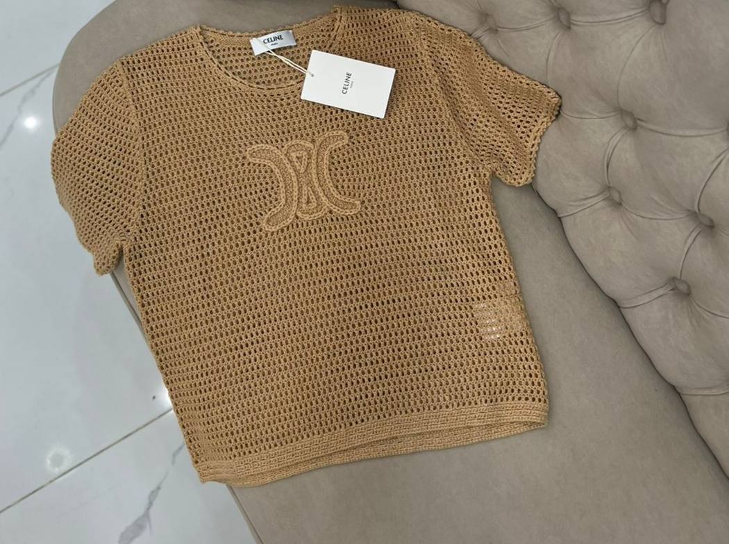 Женская футболка Celine LUX-87214 выполнена в повседневном стиле. Футболка имеет бежевый цвет и уникальную текстуру, созданную благодаря вязаной сетке. Идеально подойдет для создания стильных и комфортных образов.