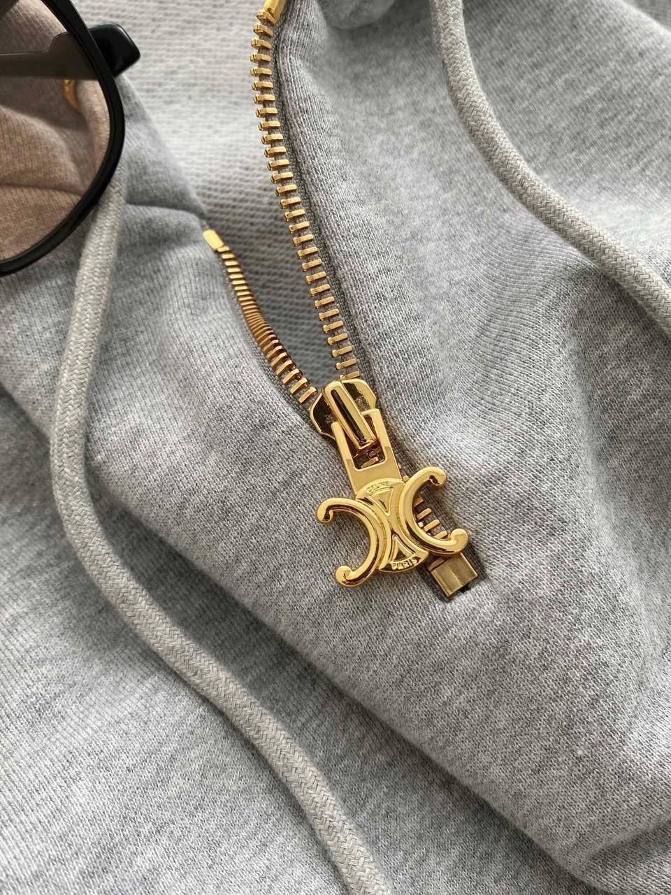 Худи Celine LUX-94790 - это стильная модель в спортивном стиле. Худи серого цвета с длинными рукавами и капюшоном. Он отлично подойдет для создания повседневных образов.