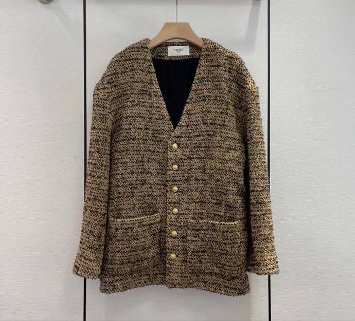 Кардиган Celine LUX-75080 – это стильный предмет гардероба от известного бренда. Он выполнен в классическом стиле, с V-образным вырезом и золотистыми пуговицами. Кардиган имеет двухцветную текстуру и может использоваться как верхний слой одежды для создания элегантных образов.