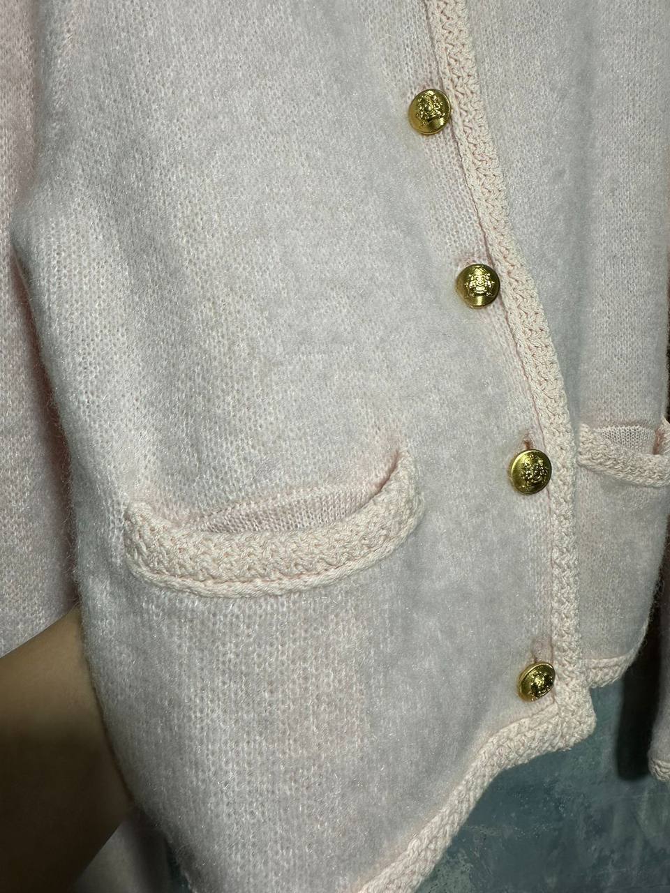 Кардиган Celine LUX-96468 – это воплощение элегантности и стиля от известного бренда. Кардиган молочного цвета с контрастной белой отделкой по краю, пуговицам золотистого цвета и двумя карманами спереди. Эта модель станет отличным дополнением к любому образу, подчеркивая утонченный вкус своей владелицы.
