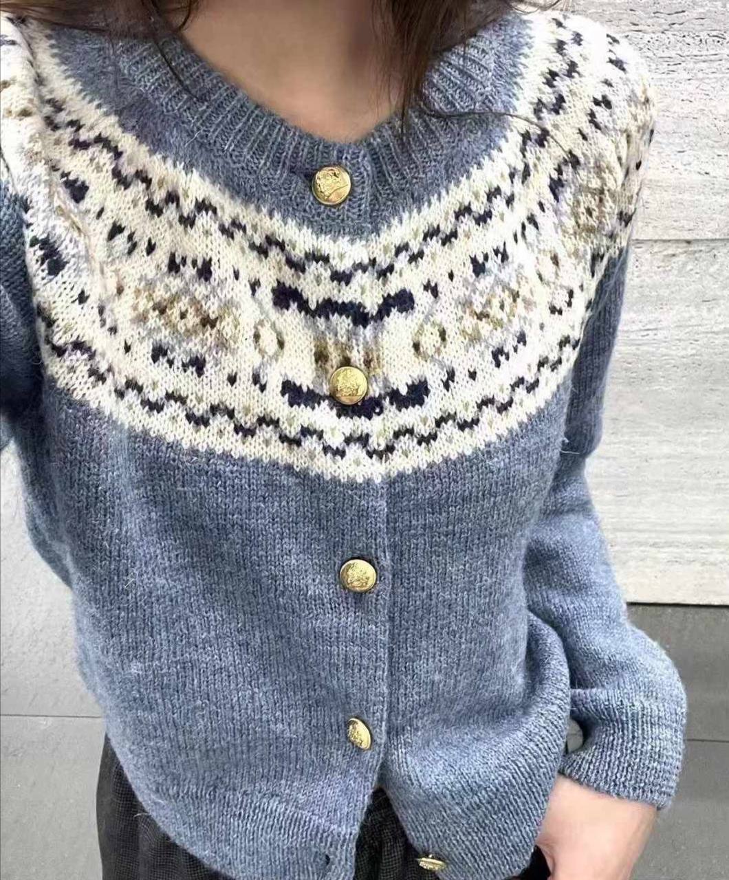 Кардиган Celine LUX-111149 представляет собой стильный элемент гардероба. Кардиган выполнен в комбинированном цвете, с узором на плечах и груди, который добавляет элегантности. Он идеально подходит для создания повседневных и более нарядных образов.
