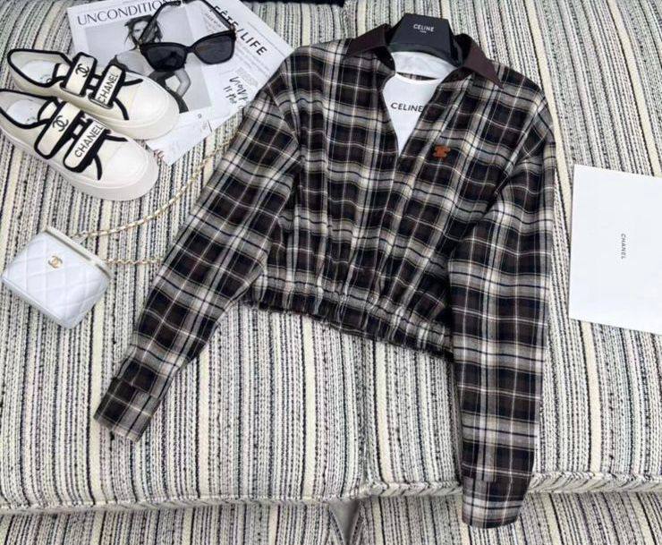 Кофта Celine LUX-80887 - это стильная модель в клетку, которая сочетает в себе элегантность и комфорт. Кофта выполнена в классическом стиле с воротником и имеет свободный крой. Её можно носить как самостоятельный элемент гардероба или в сочетании с другими вещами.