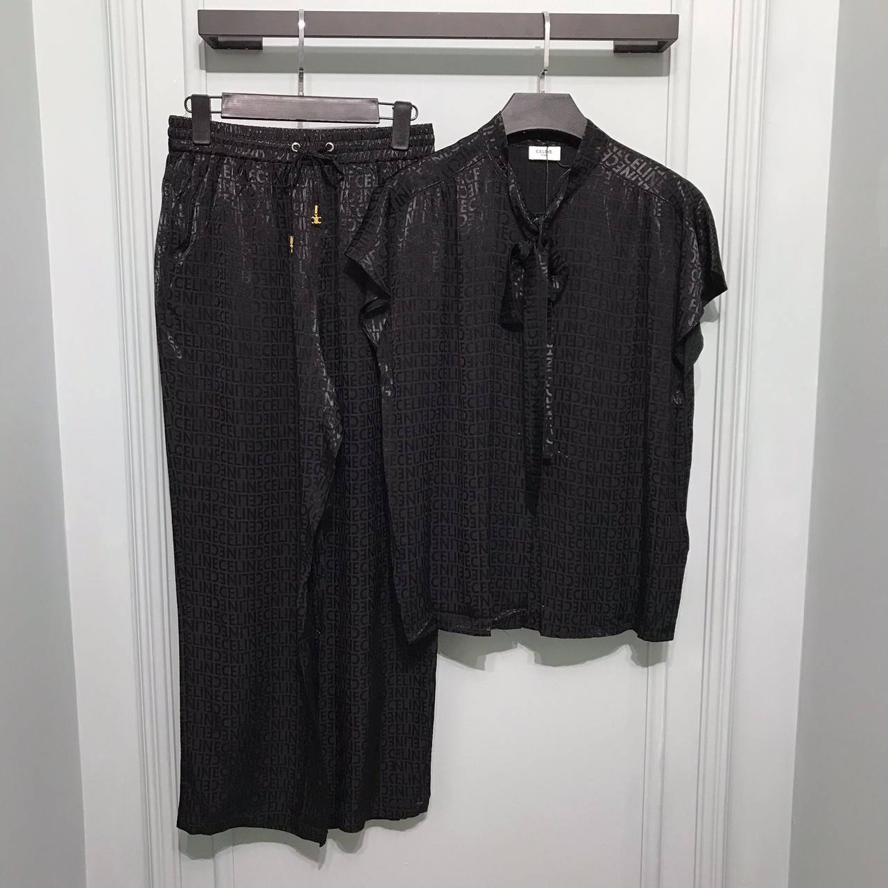 Костюм Celine LUX-71625 – это элегантный ансамбль, который сочетает в себе стиль и комфорт. Костюм выполнен в черном цвете с повторяющимся логотипом бренда. Этот комплект идеально подойдет для создания как повседневных, так и более формальных образов.