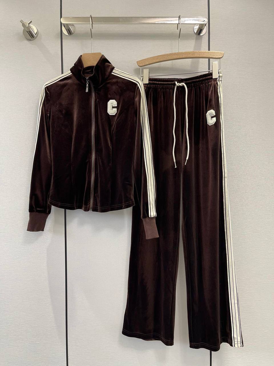 Костюм спортивный Celine LUX-76812 — это стильный и комфортный ансамбль для современной женщины. Костюм выполнен в насыщенном коричневом цвете, придающем образу элегантность. Дизайн костюма сочетает в себе спортивный стиль с элементами роскоши, подчеркивая индивидуальность его обладательницы.