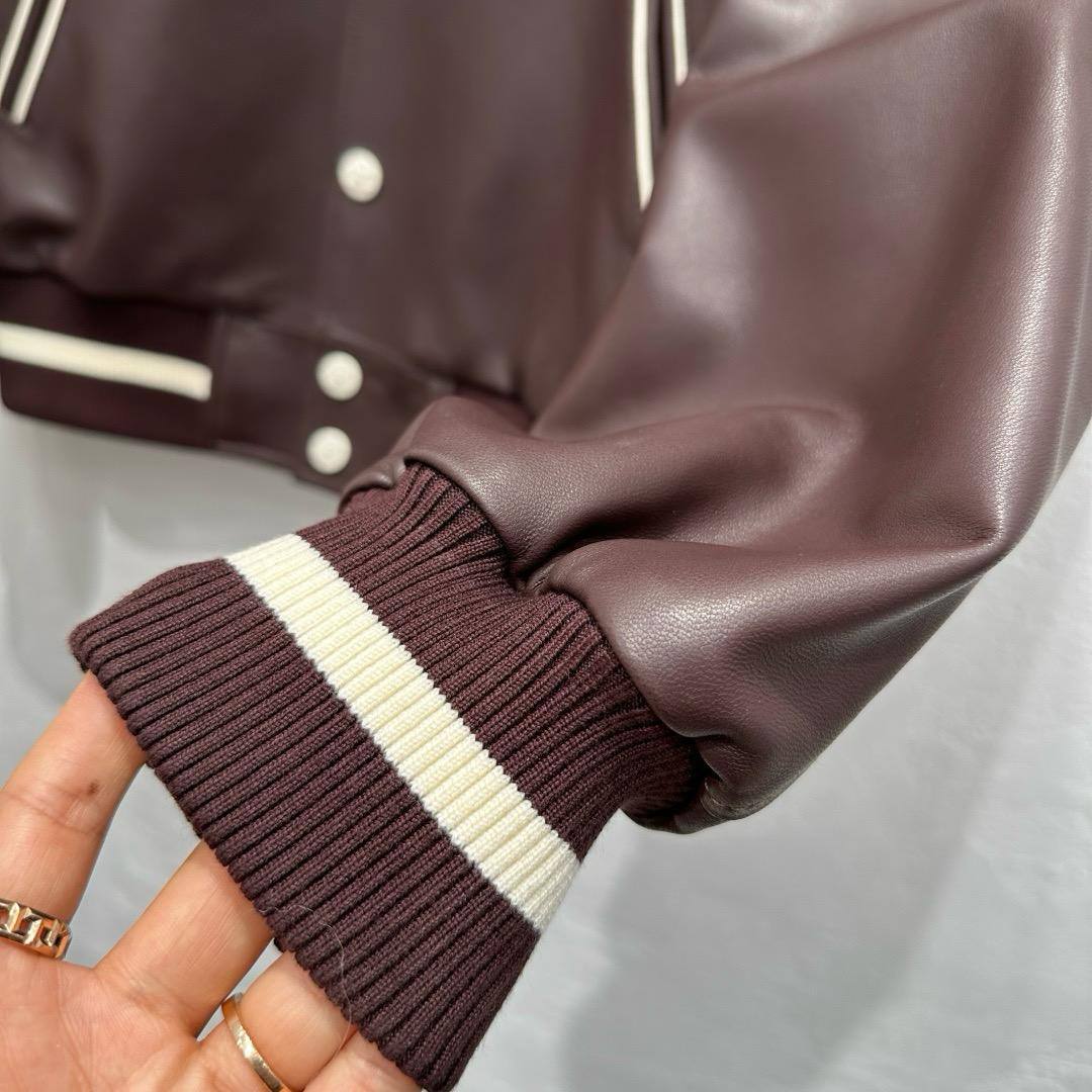 Кожаный бомбер Celine LUX-115894 представляет собой стильную верхнюю одежду в спортивном стиле. Данная модель выполнена в коричневом цвете, с контрастными белыми полосками на карманах, воротнике, манжетах и поясе. Бомбер подойдет для создания повседневных образов, сочетая в себе элегантность и практичность.