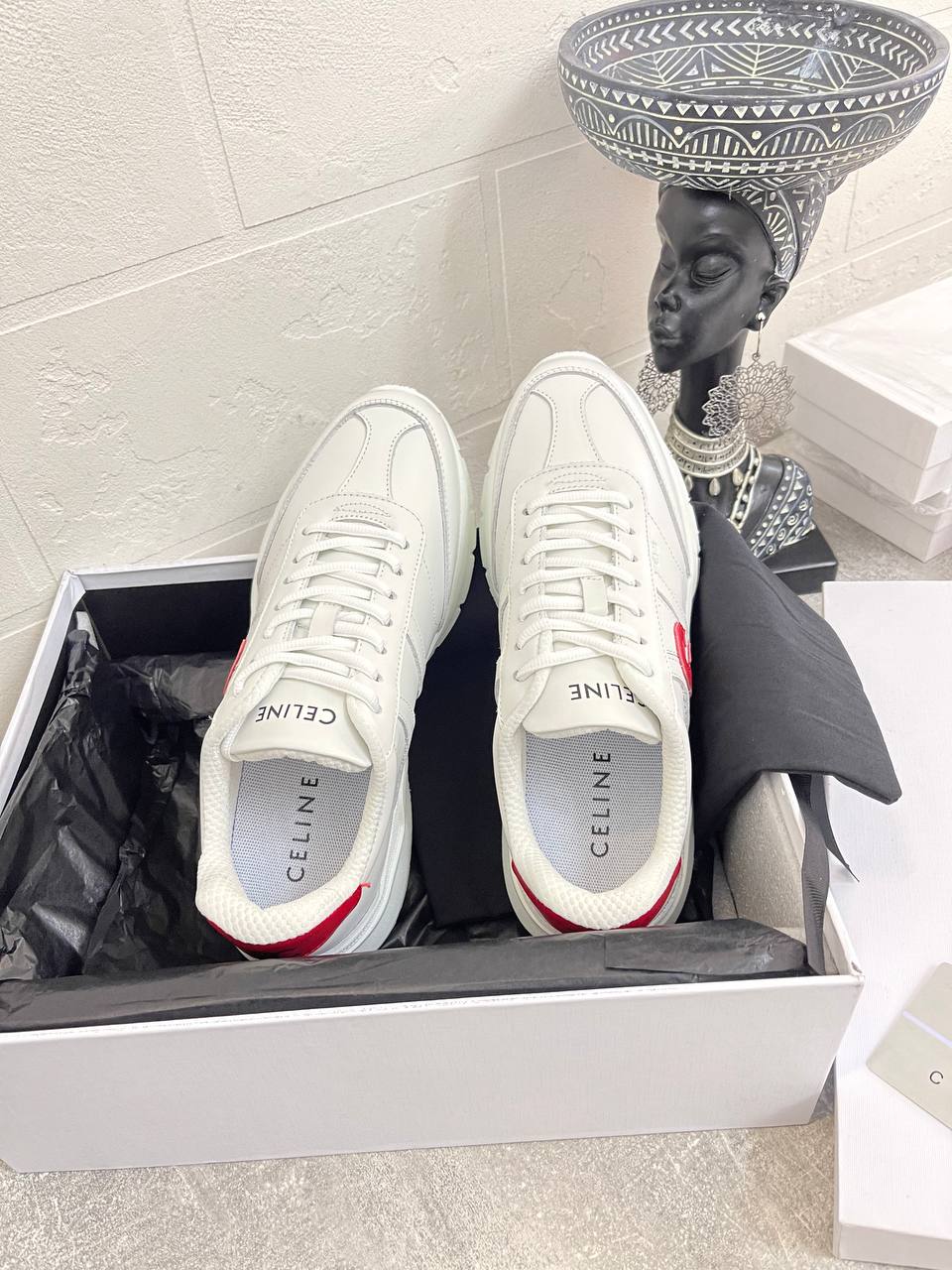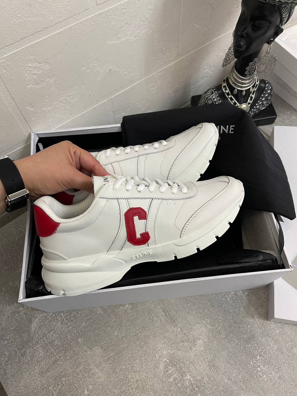 Кроссовки Celine LUX-104754 - это современная классика, сочетающая в себе элегантность и спортивный стиль. Белые кроссовки с красными акцентами и фирменной буквой "C" на боковой части, создают яркий, но в то же время сдержанный образ. Отлично подойдут для повседневной носки, дополняя любой гардероб.