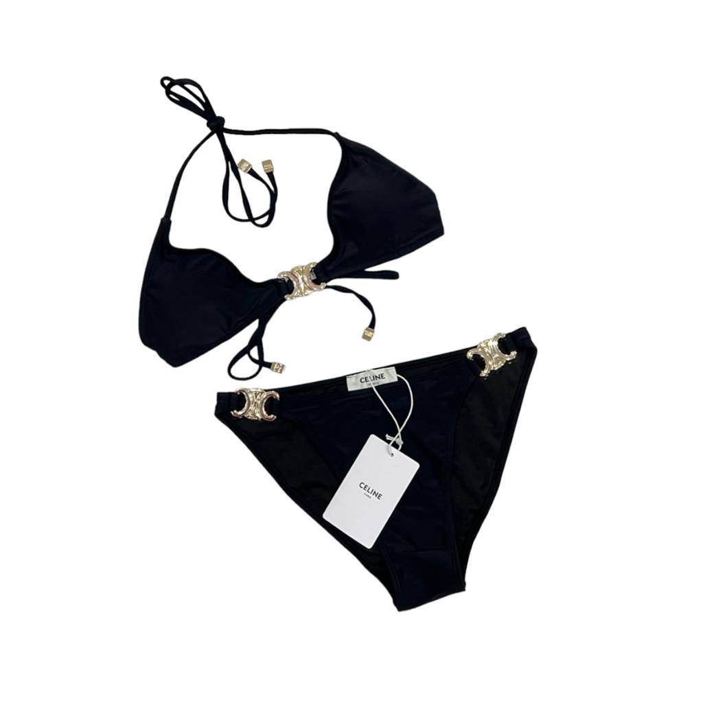Купальник Celine LUX-91594 - это элегантный и стильный купальник, предназначенный для пляжного отдыха и создания модного образа. Купальник выполнен в классическом черном цвете. Яркий акцент - золотистая фурнитура на лифе и плавках.