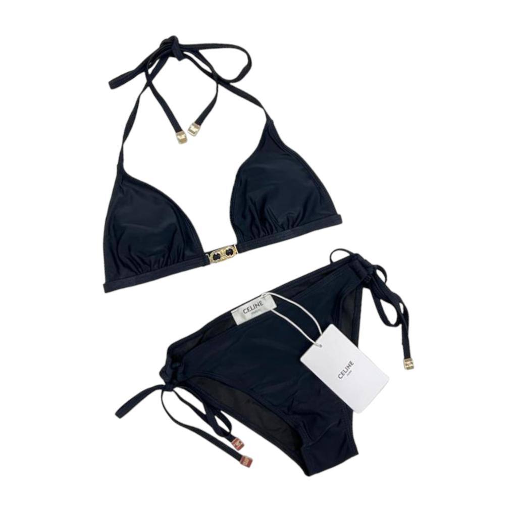 Купальник Celine LUX-92074 представляет собой элегантный раздельный купальник черного цвета. Данная модель имеет классический минималистичный дизайн с треугольным верхом и плавками-бикини. Идеально подходит для пляжного отдыха и создания стильного образа.