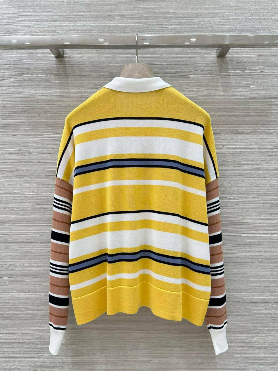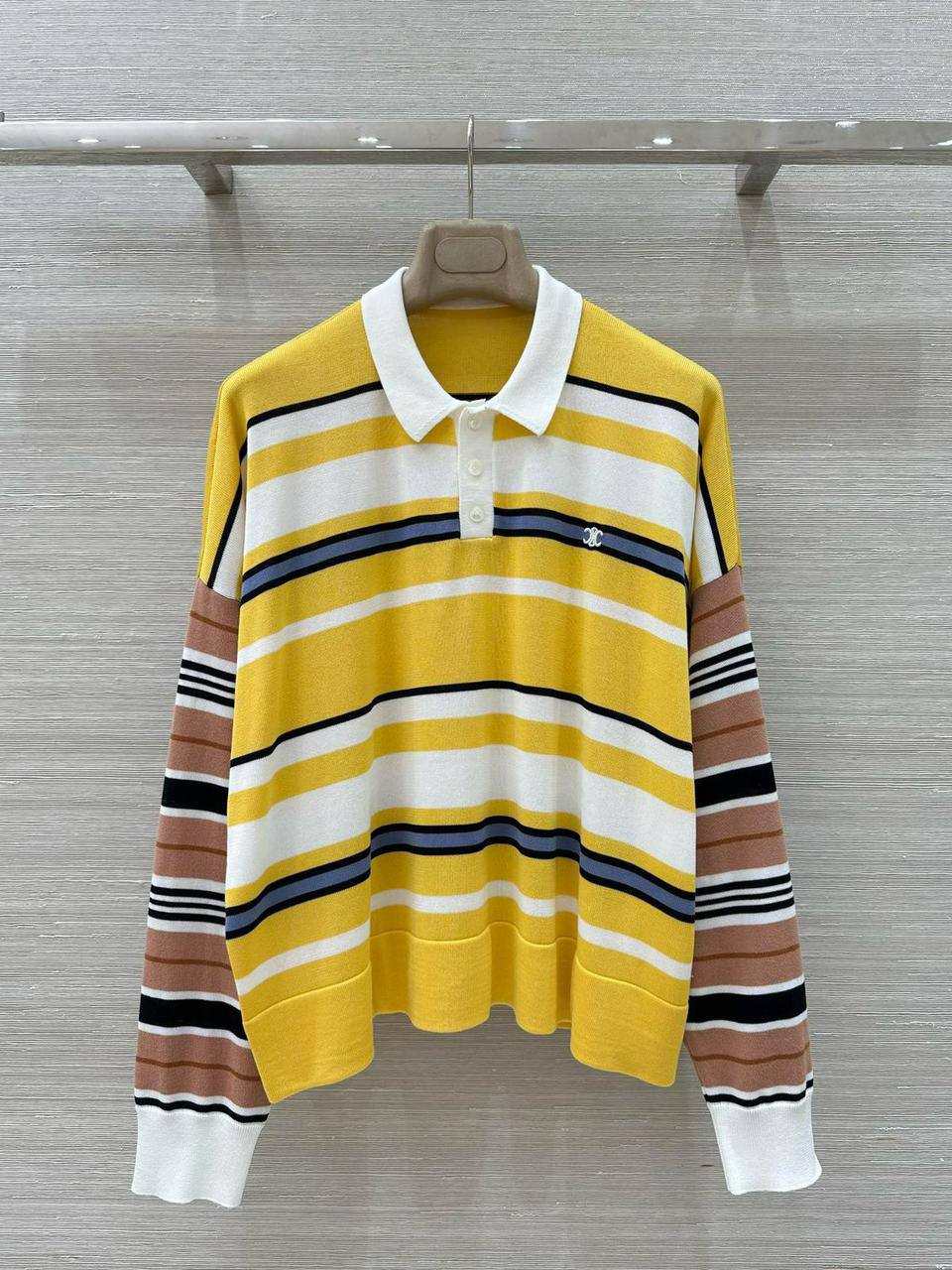 Лонгслив Celine LUX-121902 - стильный и яркий выбор для современного гардероба. Этот лонгслив с длинными рукавами и полосатым дизайном сочетает в себе комфорт и модный акцент.