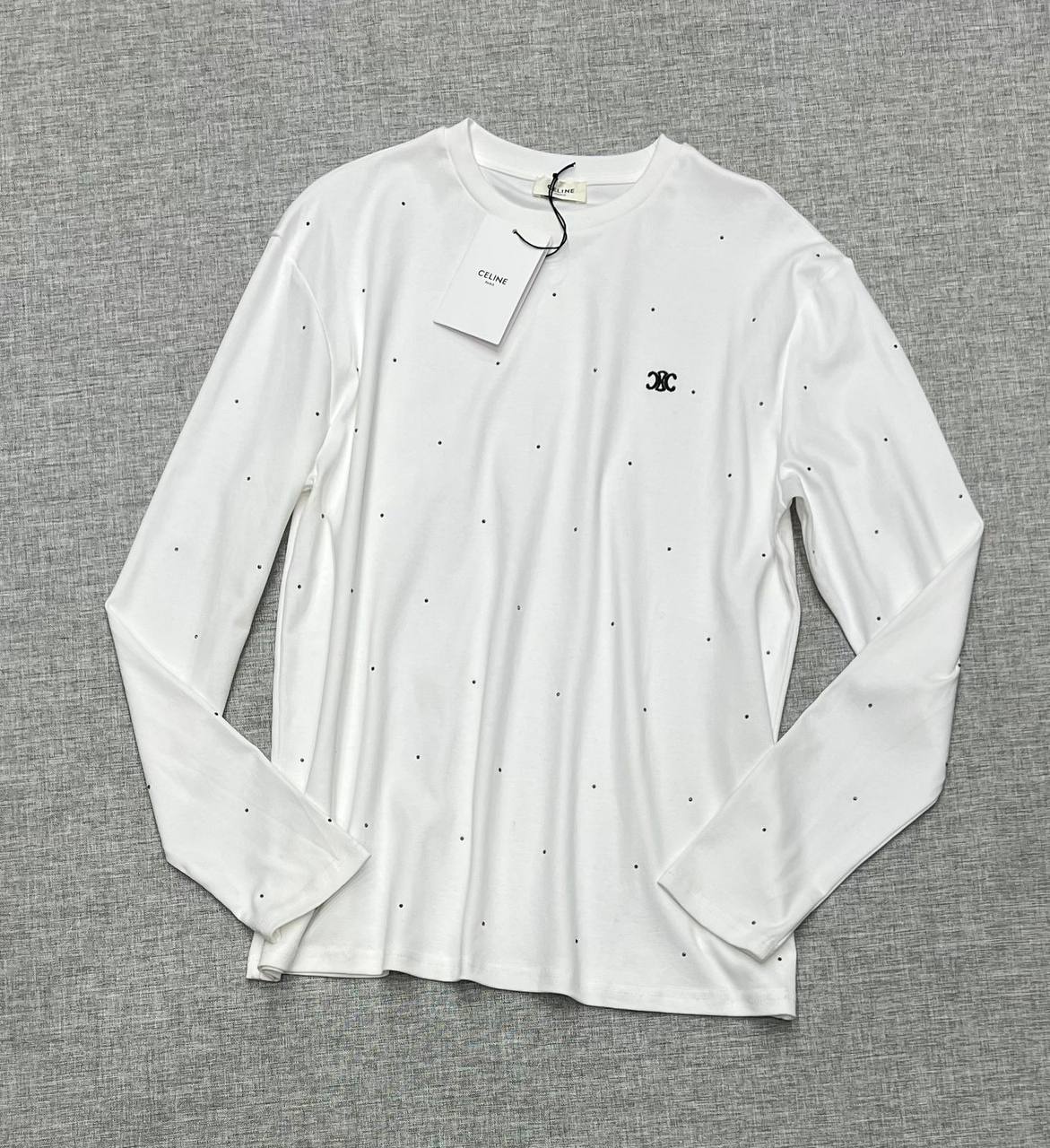 Лонгслив Celine LUX-99031 - это стильный предмет гардероба от известного бренда. Лонгслив выполнен в белом цвете с точечным принтом по всей поверхности. Классический дизайн делает его отличным выбором для повседневной носки, легко сочетается с различной одеждой.