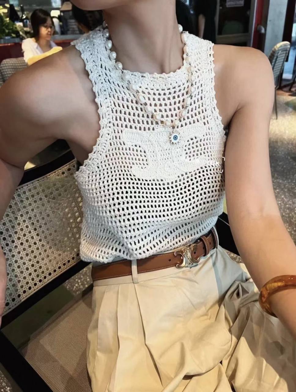Эта белая майка Celine LUX-68667 является воплощением элегантности и утонченности. Вязаный узор придает ей особый шарм, делая ее идеальным выбором для создания стильных летних образов. Майка прекрасно сочетается с брюками и юбками, добавляя любому наряду нотку изысканности.