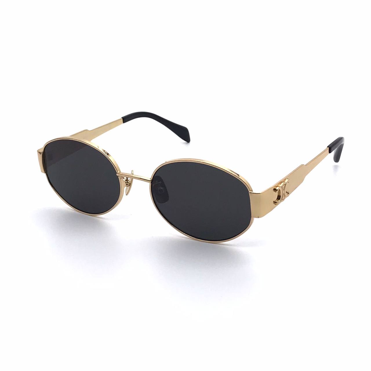 Очки Celine LUX-69875 — это стильный аксессуар, который сочетает в себе элегантность и функциональность. Очки имеют золотистую оправу овальной формы и черные линзы, что создает изысканный вид. Они идеально подойдут для создания завершенного образа, защищая глаза от солнца.