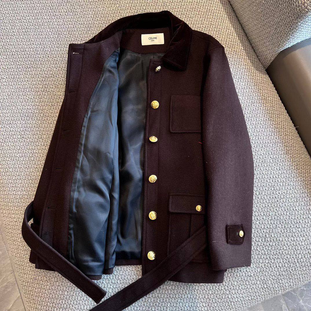 Пальто Celine LUX-102776 – это элегантное пальто в классическом стиле. Оно выполнено в насыщенном шоколадном оттенке с контрастным бархатным воротником. Пальто имеет приталенный силуэт с поясом, подчеркивающим талию, и золотистые пуговицы.