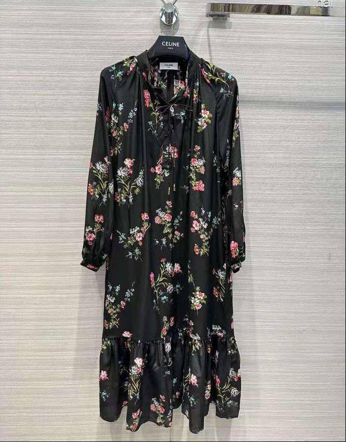 Платье Celine LUX-84576 — это элегантное платье с цветочным принтом. Оно выполнено в романтическом стиле, сочетает в себе изысканность и женственность. Чёрный фон с яркими цветочными узорами создает привлекательный контраст, делая платье идеальным для различных мероприятий.