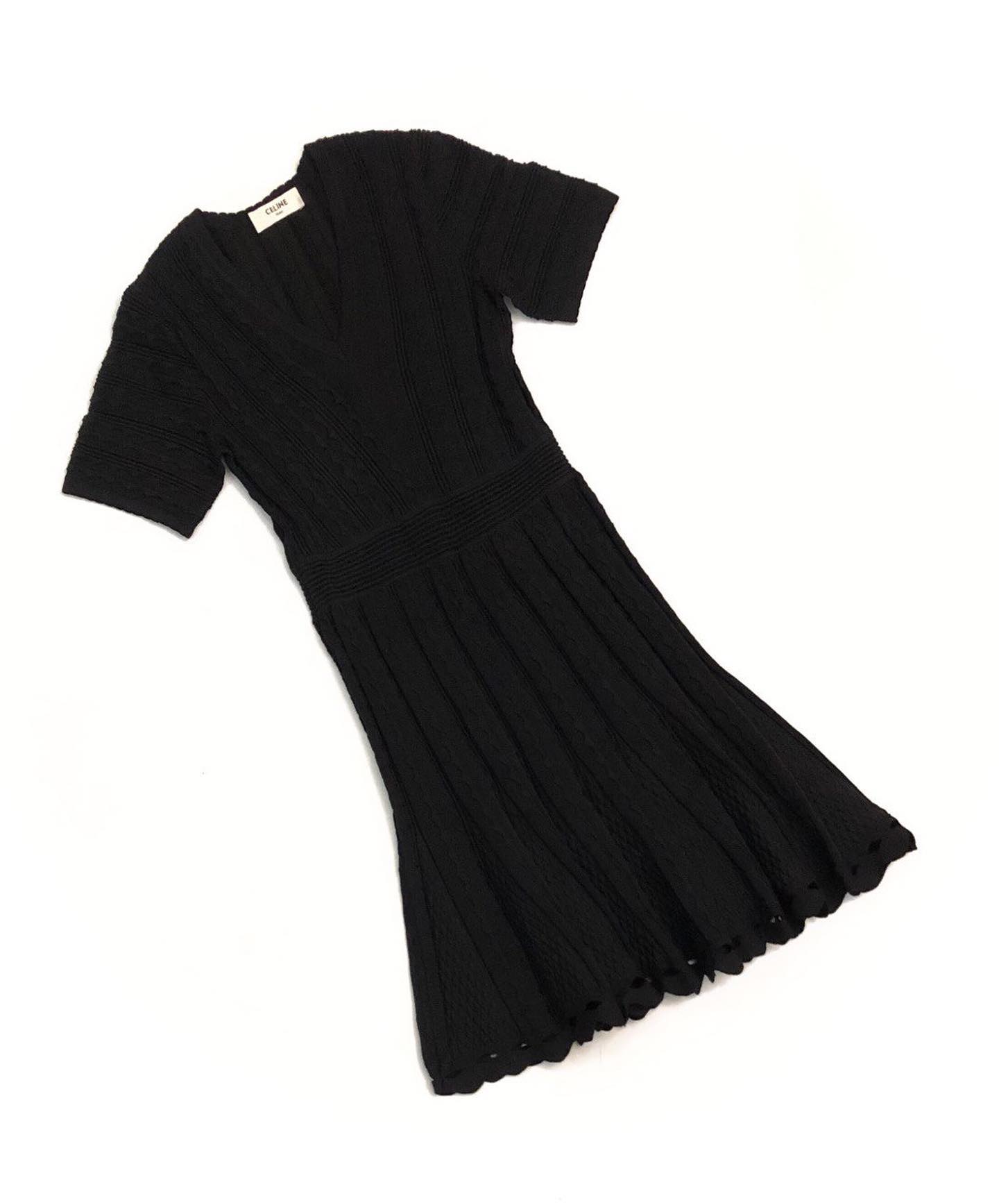 Элегантное черное платье Celine LUX-36470 сочетает в себе классический стиль и современный дизайн. Вязаный трикотаж с фактурным узором создает объем и придает изделию утонченность. V-образный вырез горловины и рукава ? делают его универсальным выбором для различных случаев.