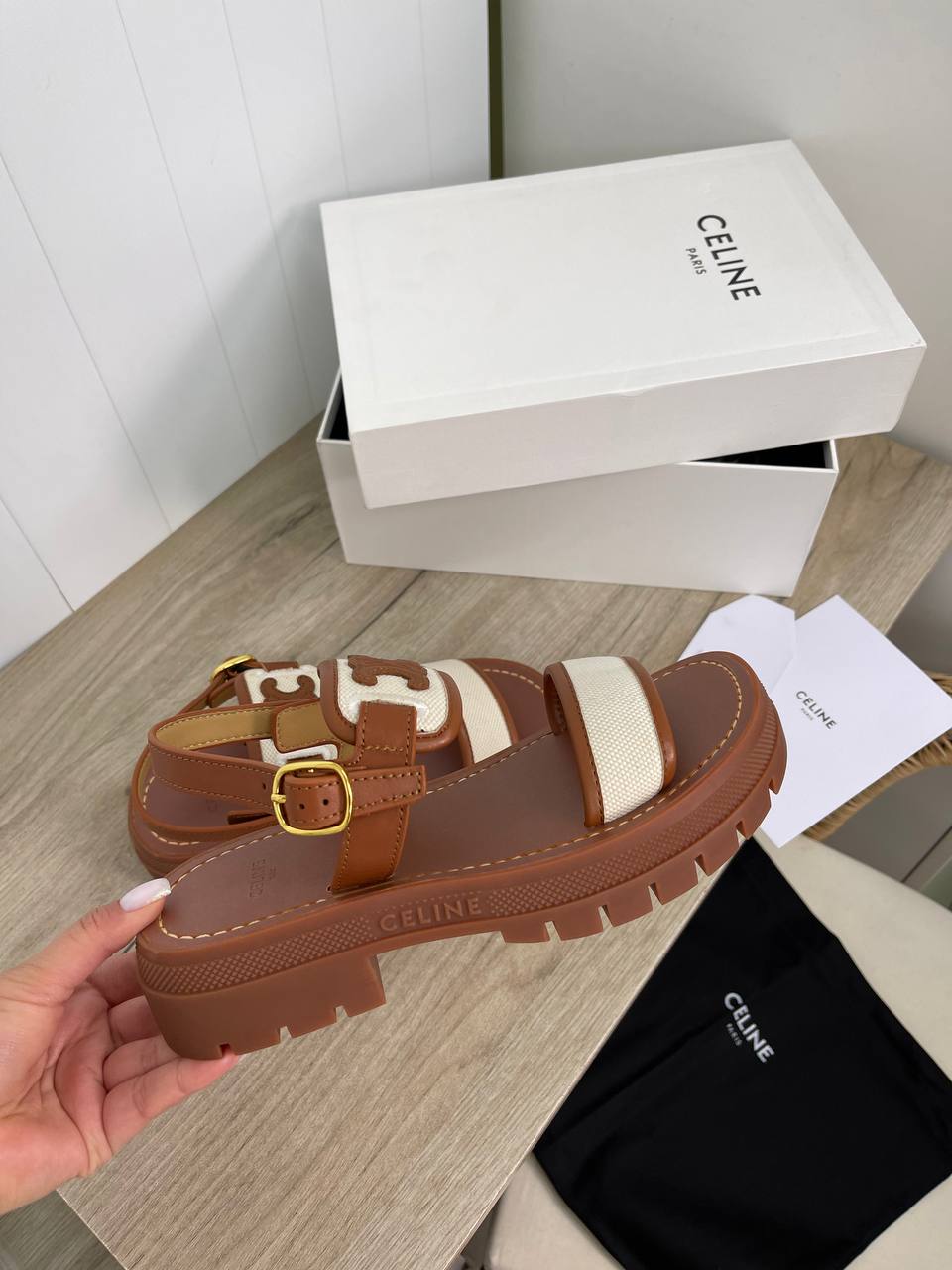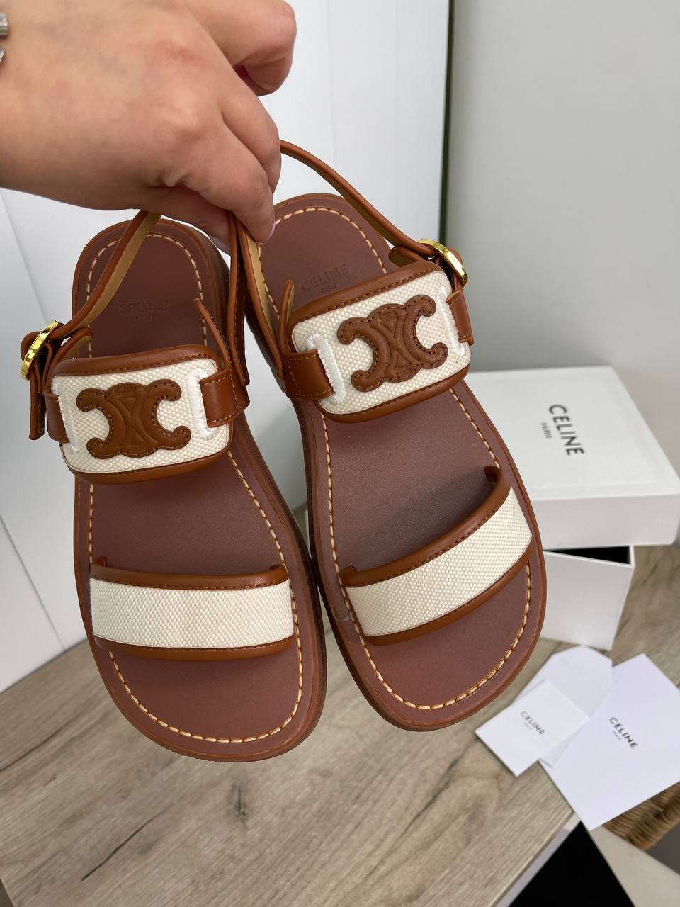 Сандалии Celine LUX-89128 представляют собой стильную летнюю обувь, сочетающую в себе комфорт и элегантность. Сандалии выполнены в коричневом цвете с элементами кремового текстиля и золотистой фурнитурой. Идеально подойдут для создания повседневных образов, а также для прогулок и отдыха.
