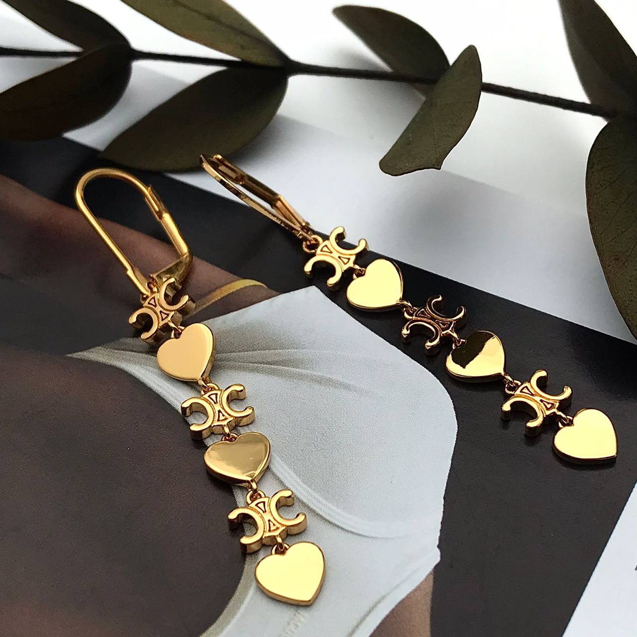 Серьги Celine LUX-93117 представляют собой стильное украшение в золотистом цвете, выполненное в виде цепочки с сердечками и логотипом бренда. Эти элегантные серьги станут прекрасным дополнением к любому образу, подчеркивая индивидуальность и вкус своей обладательницы.