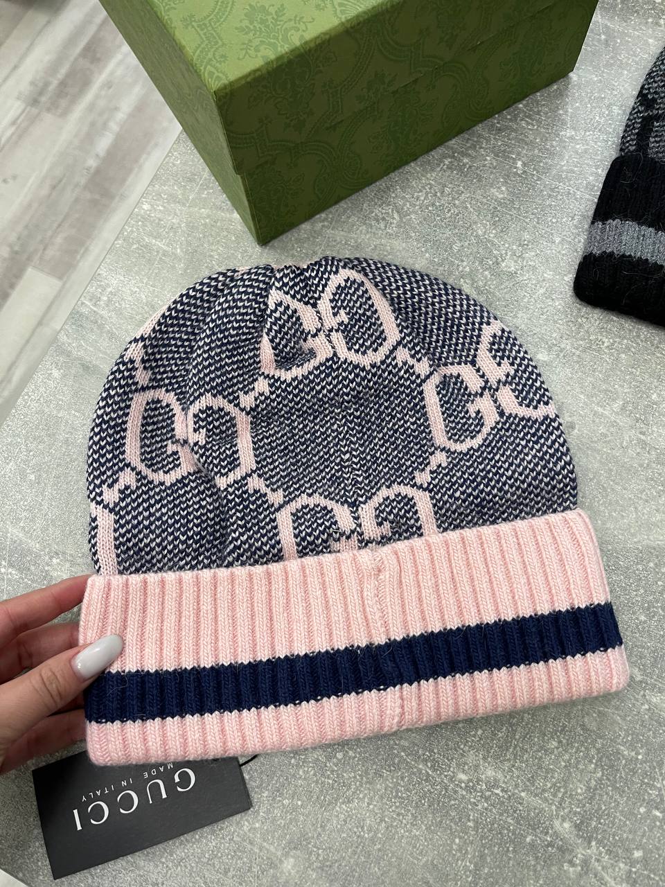 Шапка Gucci LUX-98854 представляет собой стильный и теплый аксессуар для холодного времени года. Шапка выполнена в розово-синем цвете с узором логотипа бренда. Она обладает мягкой текстурой и предназначена для повседневного использования, дополняя различные образы.
