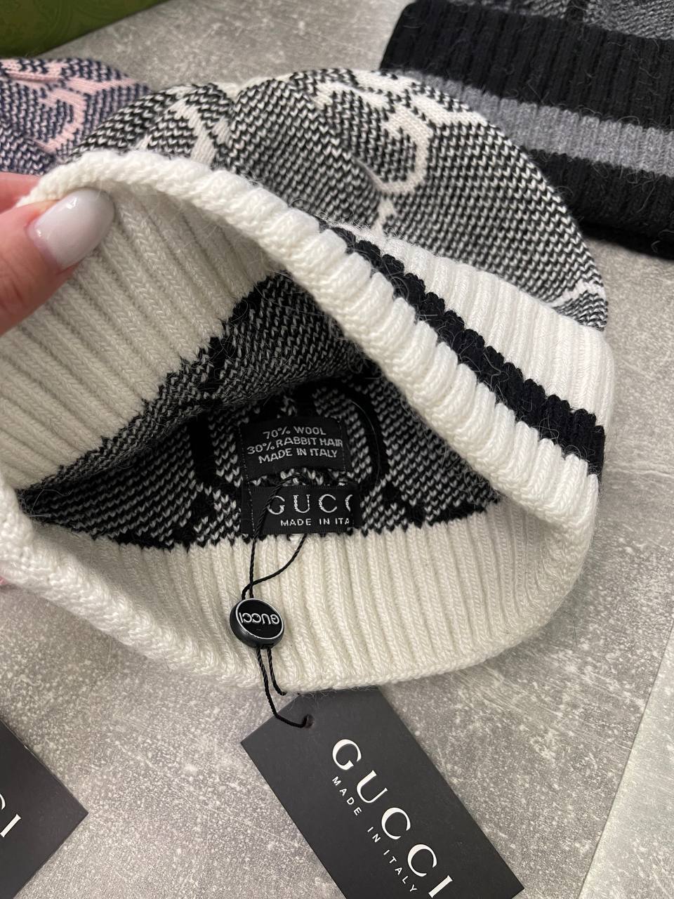 Шапка Gucci LUX-98855 – это стильный аксессуар, который сочетает в себе элегантность и комфорт. Шапка выполнена в классическом дизайне, преимущественно белого и черного цветов, с узнаваемым логотипом бренда. Этот аксессуар станет отличным дополнением к любому образу в холодное время года.