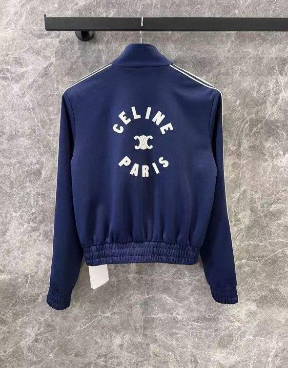 Костюм спортивный Celine LUX-115819 — это стильный спортивный костюм, выполненный в темно-синем цвете. Он состоит из куртки на молнии и прямых брюк, с белыми полосками по бокам, что придает ему спортивный и элегантный вид. Этот костюм идеален для повседневной носки, прогулок или занятий спортом.