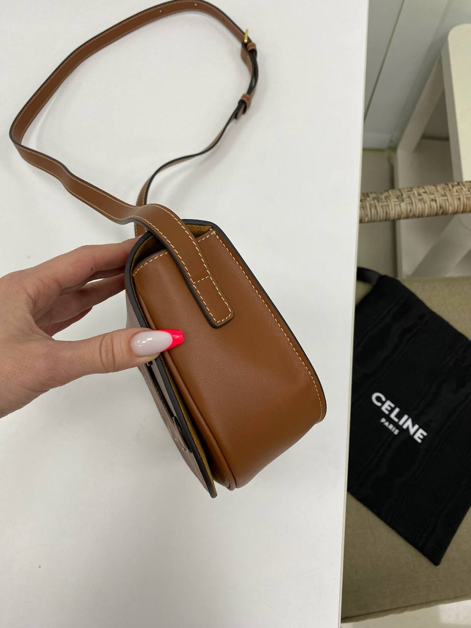 Сумка женская Celine LUX-85693 – это элегантный аксессуар в классическом стиле. Она выполнена в рыжем цвете с контрастной строчкой и узнаваемым логотипом бренда. Эта сумка через плечо идеально подойдет для повседневного использования и подчеркнет ваш безупречный вкус.