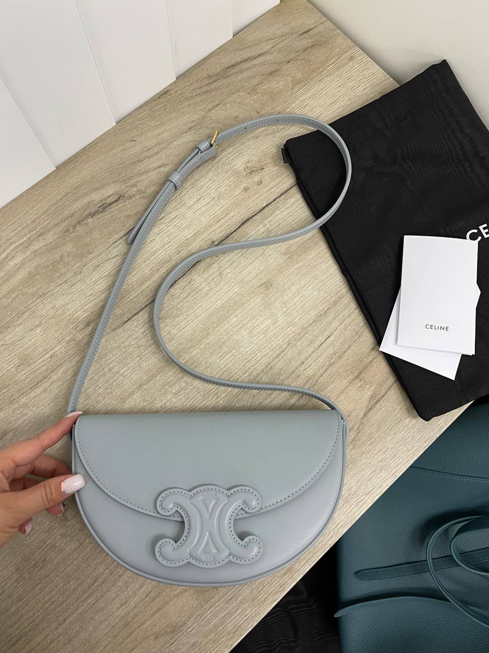 Сумка женская Celine LUX-86810 выполнена в элегантном стиле. Сумка имеет полукруглую форму, выполнена в светло-сером цвете. Ее можно использовать как повседневный аксессуар, так и для особых случаев.