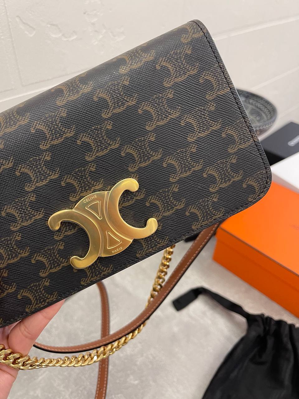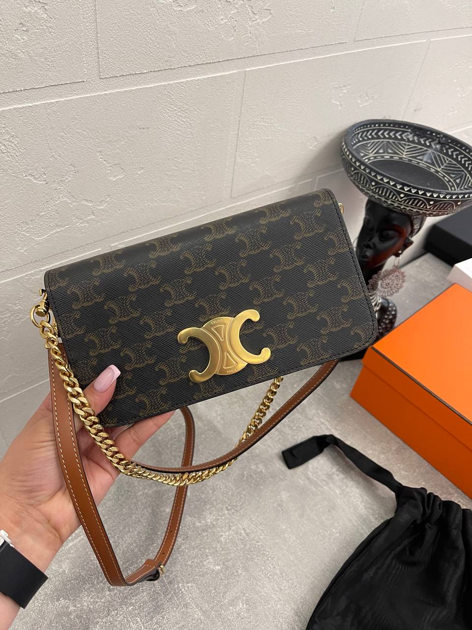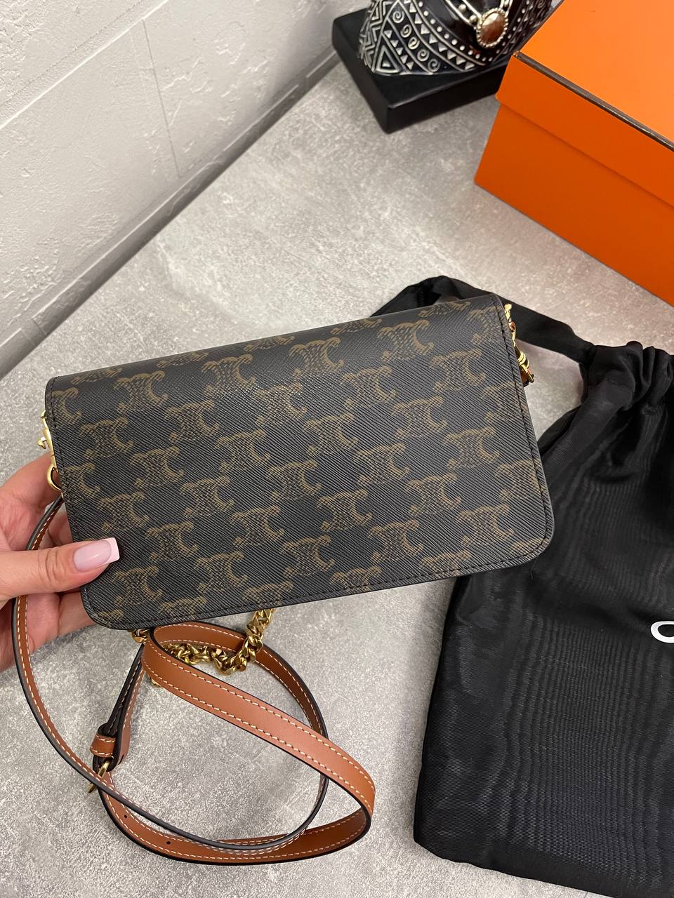 Сумка женская Celine LUX-105067 представляет собой элегантную сумку через плечо, выполненную в классическом стиле. Она выполнена в коричневых тонах с узнаваемым узором и золотистой фурнитурой, что придает ей роскошный вид. Эта сумка идеально подходит для повседневного использования или для особых случаев, добавляя изысканности любому образу.