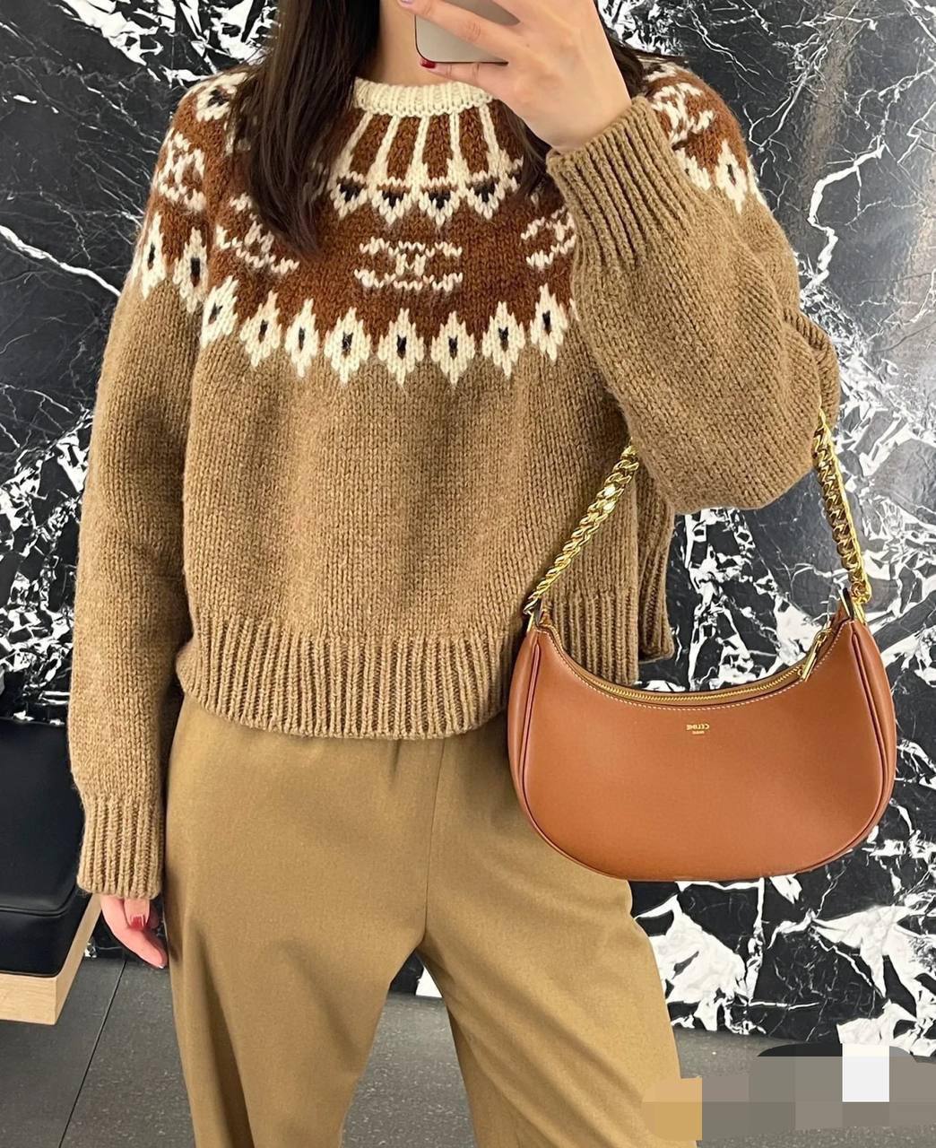 Свитер женский Celine LUX-97579 – это элегантный предмет гардероба, который сочетает в себе стиль и комфорт. Свитер выполнен в коричневых тонах с узором на груди и плечах. Такая модель станет отличным выбором для создания повседневных образов.