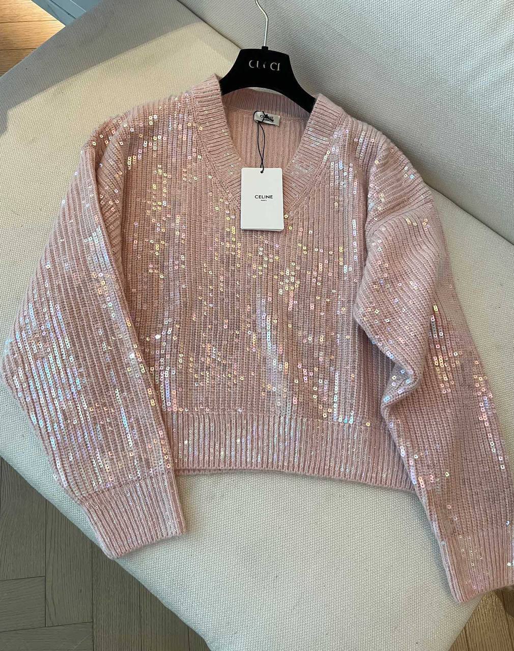 Свитер женский Celine LUX-99865 представляет собой элегантный предмет гардероба. Этот свитер, выполненный в розовом цвете с пайетками, сочетает в себе стиль и комфорт. Он идеально подойдет для создания как повседневных, так и более нарядных образов.