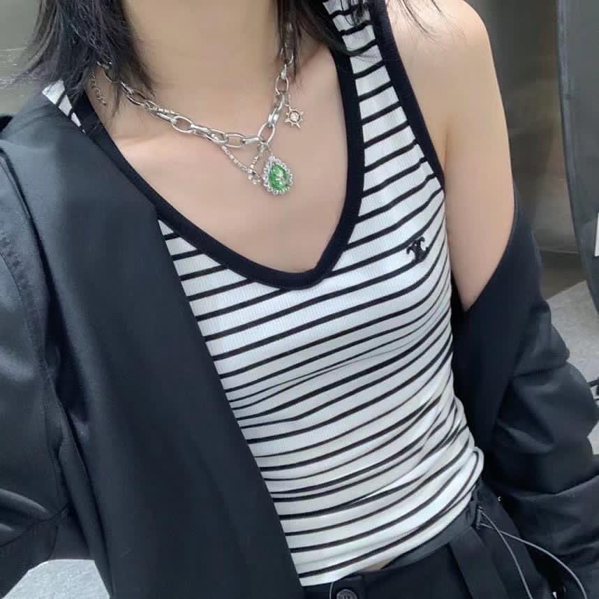 Топ Celine LUX-47572 — это элегантный топ в черно-белую полоску, отличающийся минималистичным дизайном и элегантным логотипом бренда. Его V-образный вырез и облегающий крой делают его универсальным предметом одежды, который подойдет как для повседневных, так и для более изысканных образов.